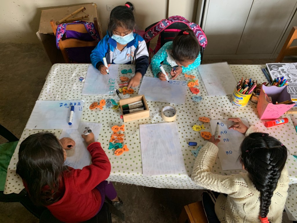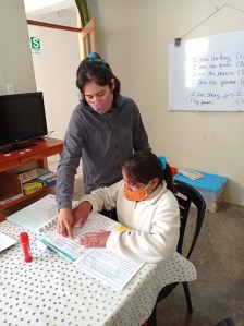 The students who started their first year of education during the Corona year (school year runs from March to December) were not yet able to read words or solve sums to 5 at the end of the school year. To catch up, we immediately started intensive classes to teach them to read and count. In the absence of solid material, both in Peru and online, Sara and Stefanie worked together on a method to learn to read quickly and enjoyable. This became a great success because the group of the first grade can now read and count well. Meanwhile, a second corona school year started and so there was a new group of ‘first graders’ who are also well advanced in their reading education and who continue to work enthusiastically.